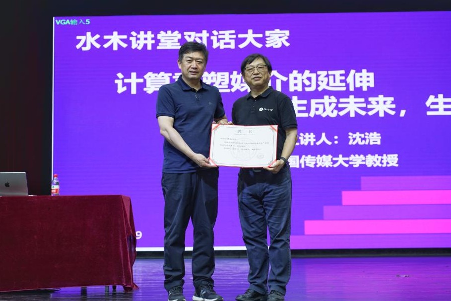 白雪峰副校长为沈浩教授颁发水木讲堂聘书