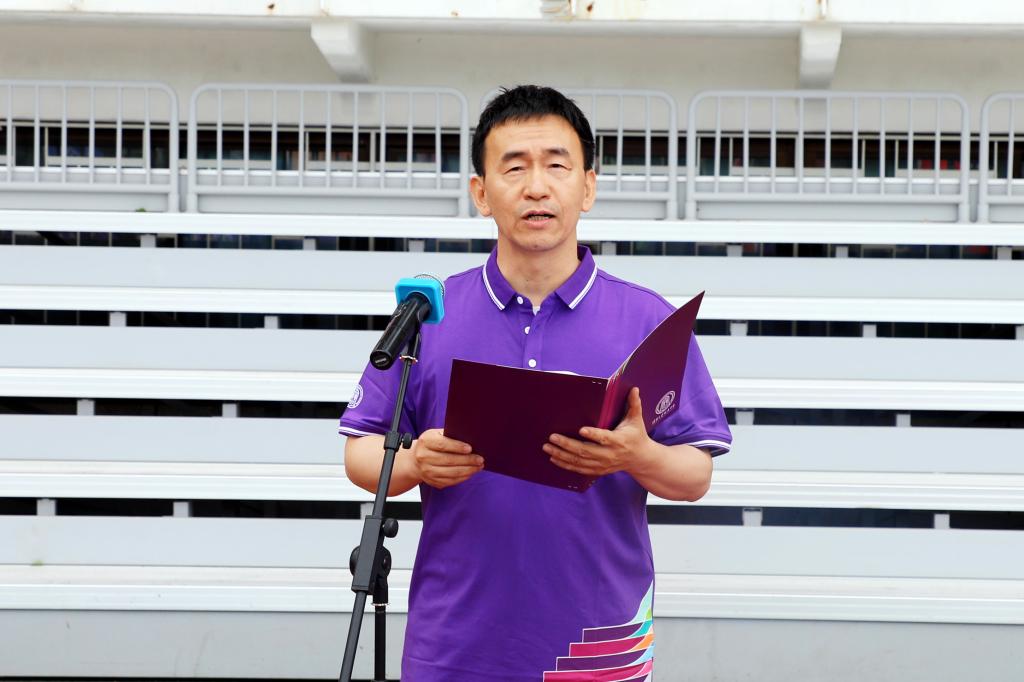 党委书记曹海翔老师致开幕辞。曹书记借毛主席所言“体育之效,至于强筋骨,进而增知识,调感情,强意志”分享到,运动的魅力,远不在于更高更快更强获得的荣耀,更在于过程中那些身心释放时的神采飞扬,全力以赴时的意志增长和携手向前时的真挚友谊。正如清华体育教育的先驱马约翰先生强调的,“体育是培养人们具有完全人格的最好手段”,这也正是举办青年教师运动会的意义。