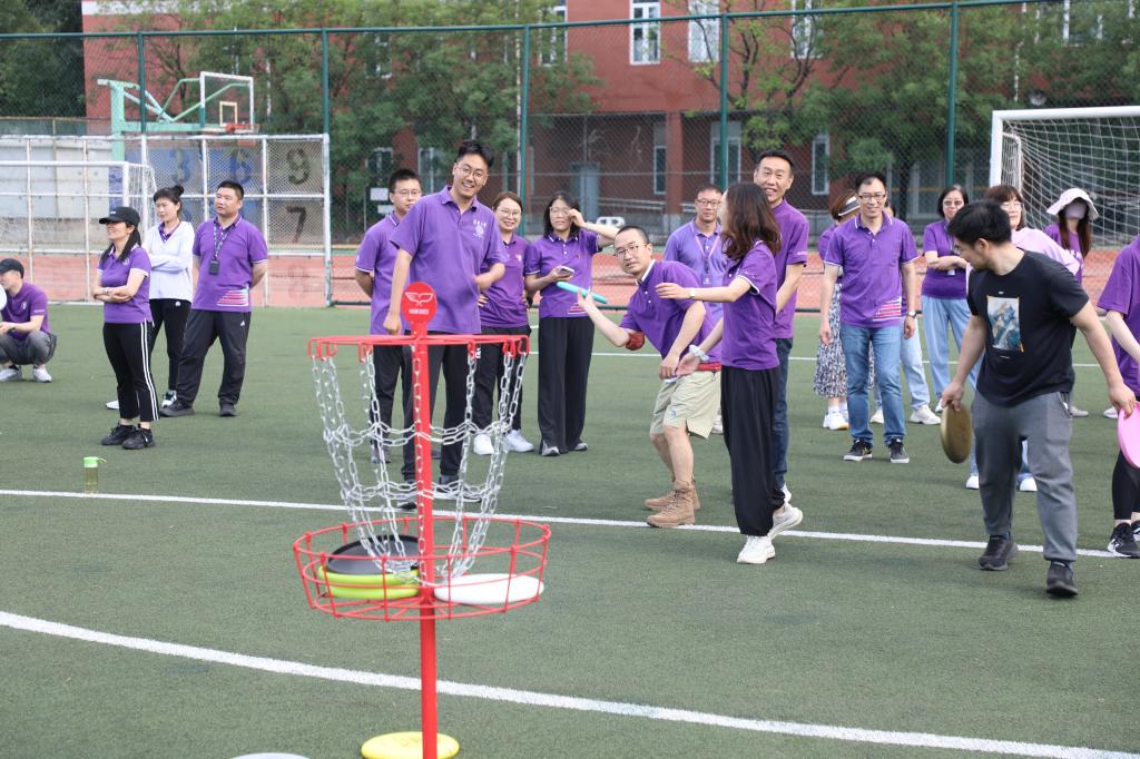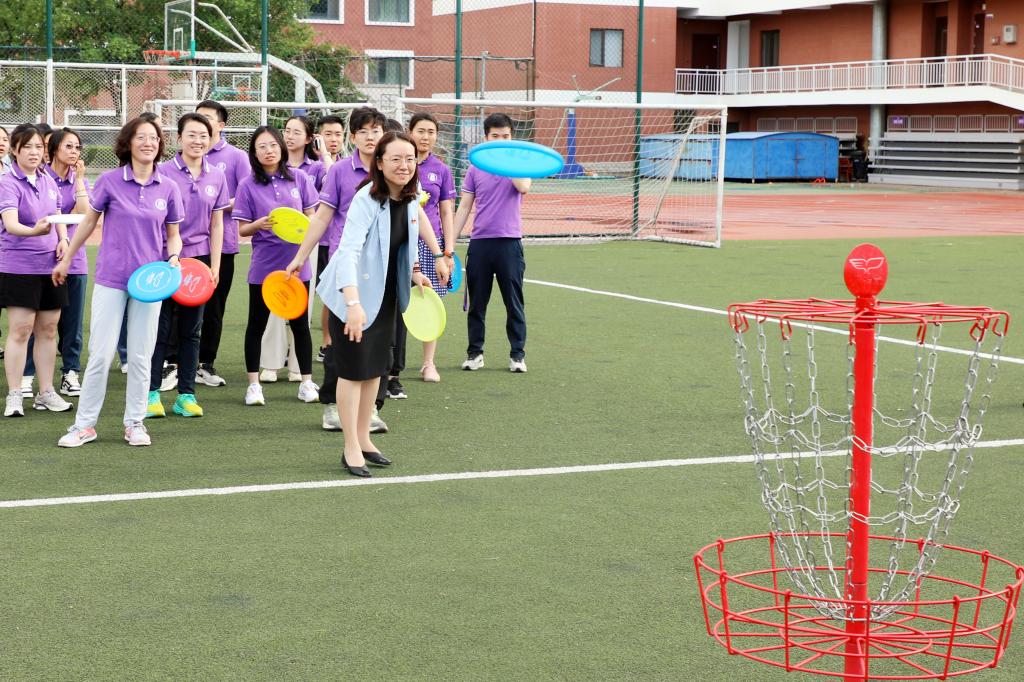 在团体合作趣味赛中,学校邀请专业素质拓展团队,带领老师们展开趣味比拼。“鼓动人心”和项目中,队员各执一绳,齐心协作,完成鼓上颠球;“水果连连看”中,大家动用智慧和技巧,还有一定的运气相伴,找出藏匿在草帽下的水果宝藏;还有“飞盘高尔夫”、“超级毛毛虫”,老师们享受游戏,体验趣味,同心合力,团结协作,各队都留下了独特的集体记忆。