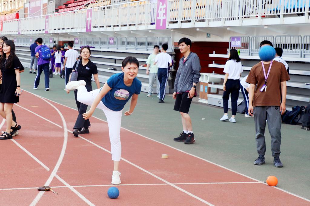 在校党委的领导与支持下,本届教师运动会由各党支部与教工团联动,不仅激活青年教师热情,还充分调动党员积极性,赛事丰富,趣味满满。在田径竞技赛段的长短跑、实心球和跳远等项目中,老师们各展所长,奋勇争先,老师们的活力与拼搏也吸引了许多同学前来观赛,为老师们加油助威。