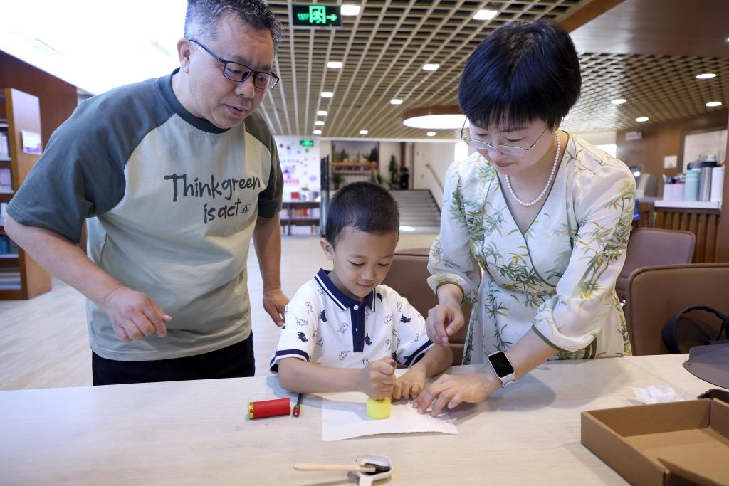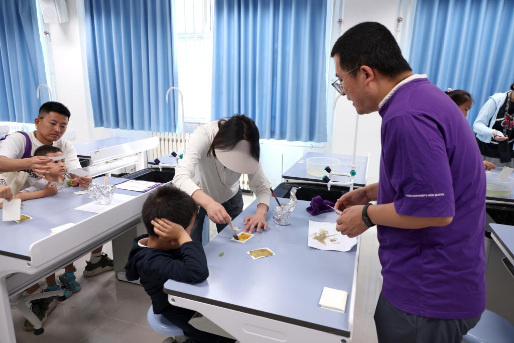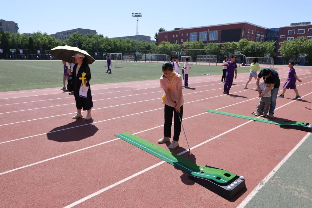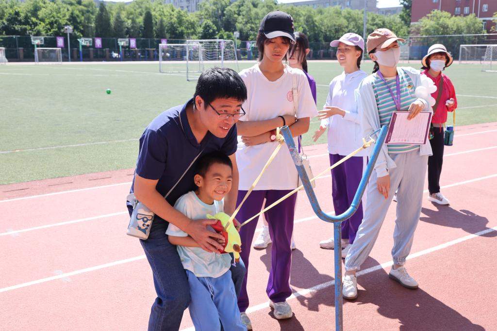 签到后,教职工带着家属到校园里8个打卡活动点参与活动。每个打卡点都吸引了许多老师和家人参与,气氛热烈。
