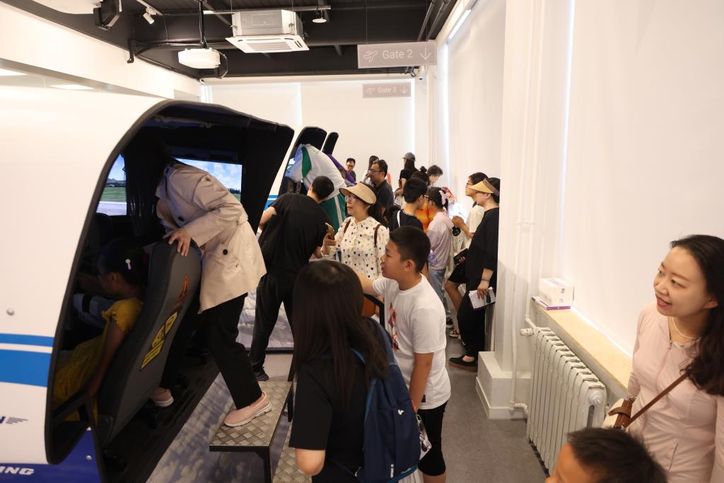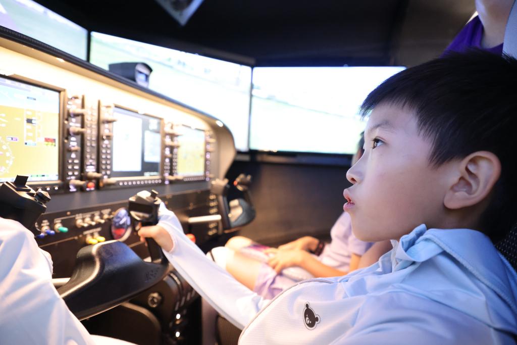 在“波音牛顿飞行学院”,老师和家人们参观、体验全动态飞行模拟器。在这里,参与者可以看到三台双座的全动态模拟器。该模拟器配备的是G1000玻璃驾驶舱,搭载的软件可模拟数千条跑道及各种各样的天气条件,可针对Cessna C172等多种机型提供逼真的飞行体验。置身其中,驾驶者可以真切地感受到机身的震动以及飞机的滑行、俯仰、倾斜、着陆冲击等多种真实的场景体验。