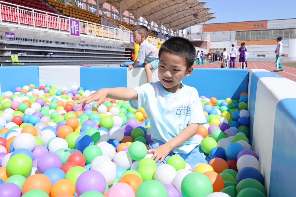 在“快乐操场”上有连体裤、高尔夫练习器、愤怒的小鸟、疯狂打大牙和海洋球五个有趣的游戏,吸引了许多孩子们参与。