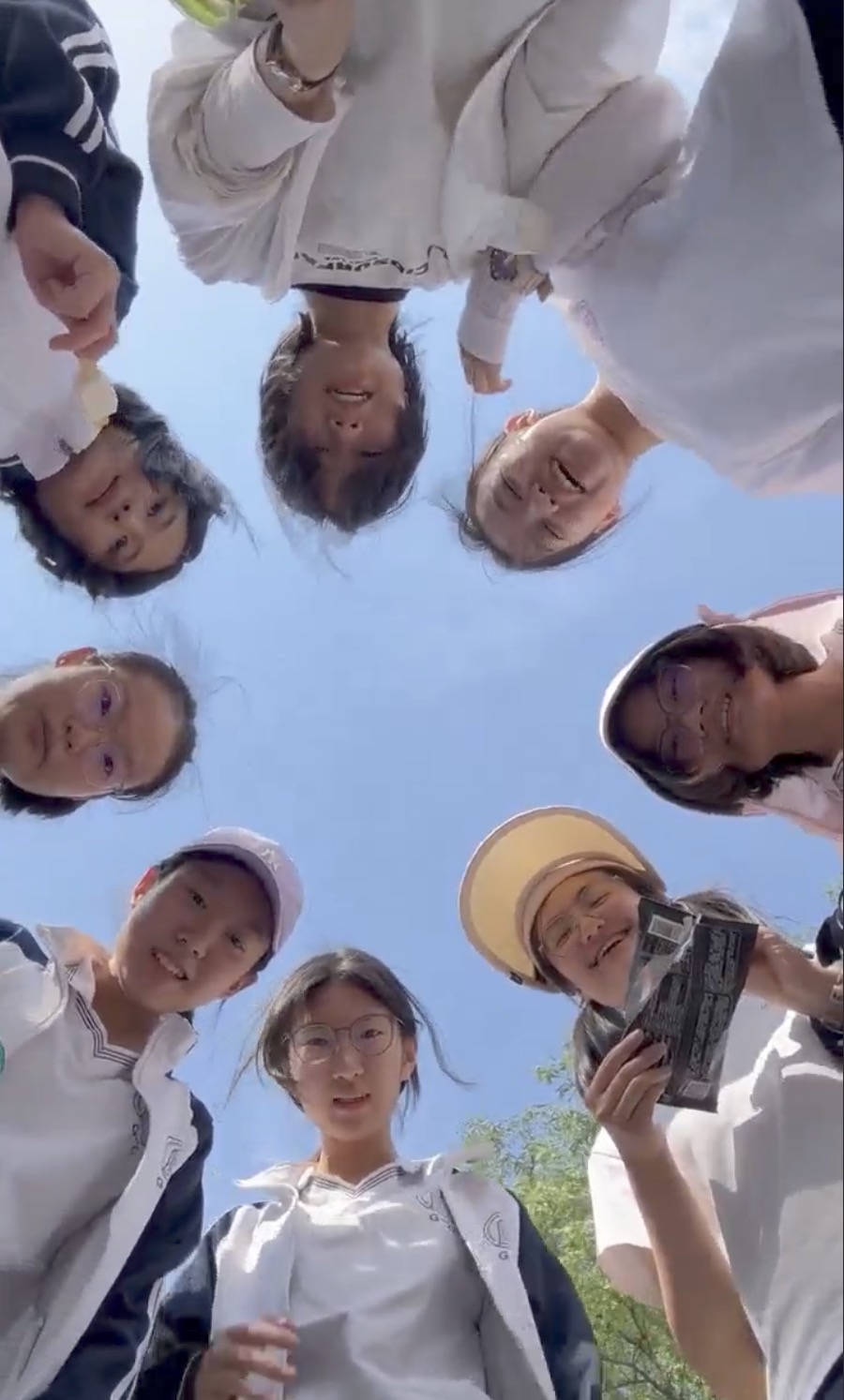 第三打卡点,同学们拼出“心”的形状,传达来自初夏的爱意。