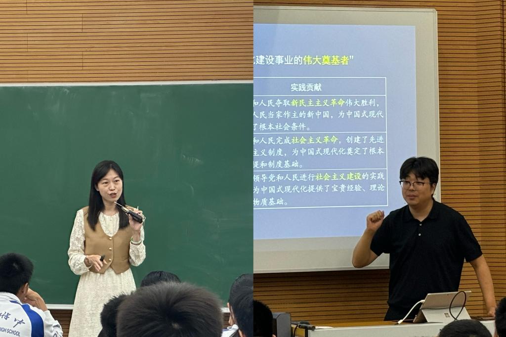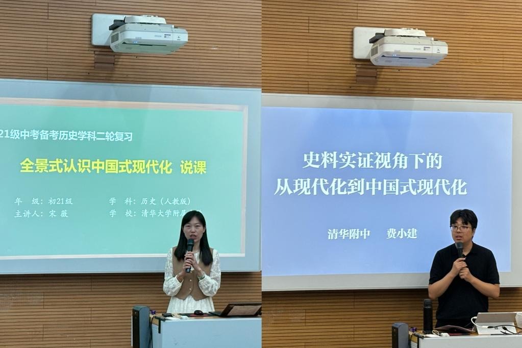 课题基地校北京市皇冠体育官网的宋薇、费小建老师,围绕一体化教学主题“中国式现代化”,分别进行了课堂教学和说课展示。宋薇老师呈现了初三学部研究课《全景式认识中国式现代化》(学生进入初三二轮复习阶段),费小建老师呈现了高二学部研究课《基于史料实证视角下的现代化到中国式现代化》(学生进入高三一轮复习阶段)。