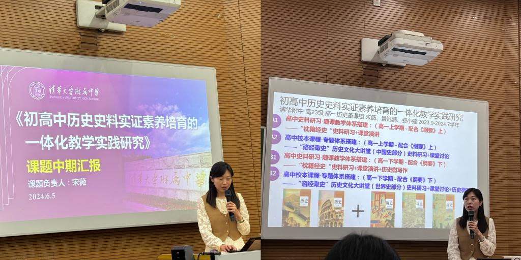 课题负责人宋薇老师进行《初高中历史史料实证素养培养的一体化教学实践研究》的课题中期汇报。