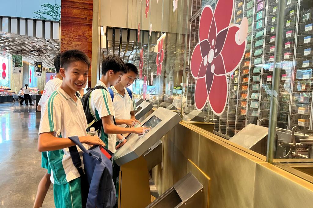 一入门,学生便被能够容纳9000多种商品的亚洲最大“24H不打烊”无人售药机深深吸引,感受到现代高科技与传统中药的融合。