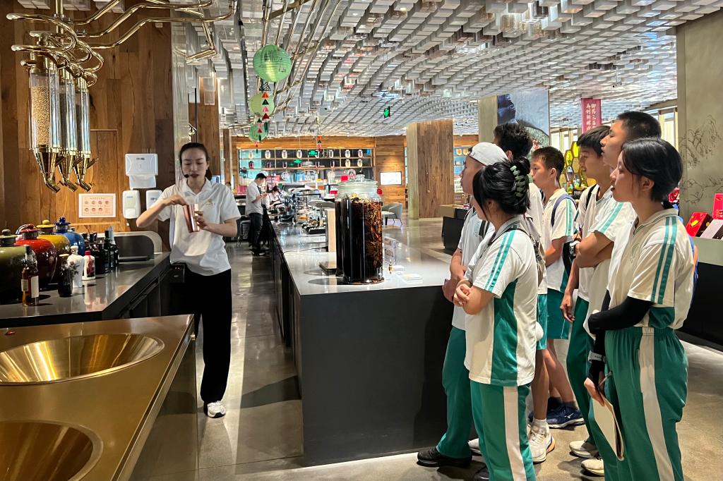 接着,学生零距离接触茶饮坊、烘焙坊、咖啡坊、古膳坊等精准食疗功能区,体会到养生食材融入日常饮食的过程。