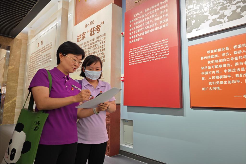 随后,全体党员以支部为单位进行参观学习,同时以展览内容为蓝本,进行了一场趣味生动、体验深刻的“‘赶考’之路上的党纪之光:红游香山答题挑战”活动。答题挑战不仅是一次知识的较量,更是一次信仰的考验。通过学习珍贵的历史文物资料,党员们更加深入地了解了中国共产党在香山革命历史时期的光辉历程和伟大成就,并与支部成员们共同探讨交流,齐心协力地完成了党纪专题的“香山答卷”,现场学习气氛热烈。