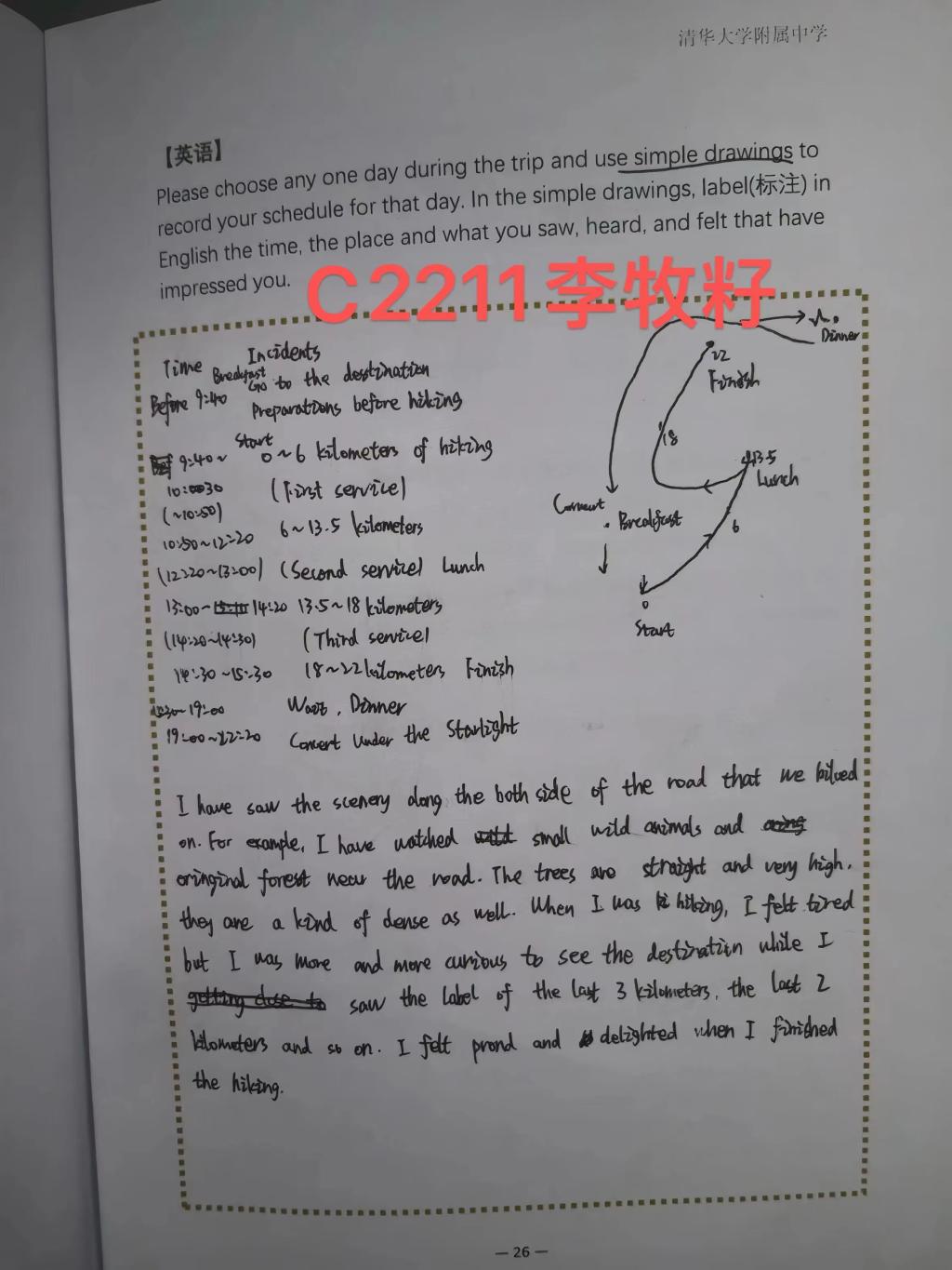 7月7日,我们初22学部新初三同学们一齐开启了6天的长白山研学之旅。我们在长白山天池前感受大自然的鬼斧神工;在浓雾之中探索前行的路;在原始森林中,行进22公里徒步,看到了小石潭记中所描述的“青树翠蔓,蒙络摇缀”,也感受到了“天山共色”之美。在长达6小时的徒步中,脚下的疼痛不断促使着我想要放弃,但“坚持”两字一直在脑中浮现,当通过终点的那一刻,手握奖牌,激动与兴奋充斥在心中。在整个研学旅行中,虽然累但也收获了自我的成长和对初三的憧憬。初三我们来啦!