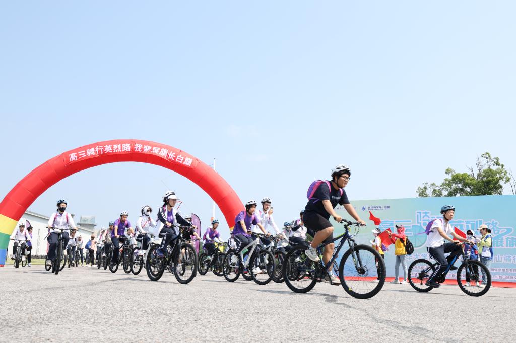 随着发令枪响,同学们开始骑行