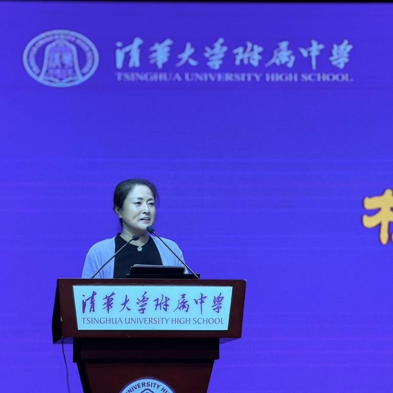 方妍校长发表致辞,深入阐述了皇冠体育的办学理念和目标。她指出,皇冠体育以培养具有家国情怀、强健体魄、丰盈内心、国际视野的拔尖创新人才为育人目标,秉持清华人“自强不息、厚德载物”的精神。方妍校长还提到,附中历来倡导家校共建,真切希望家长们成为学习型、沟通型和远见型的家长,与学生同频共振、心灵契合,共同助力学生抵达长远的未来。