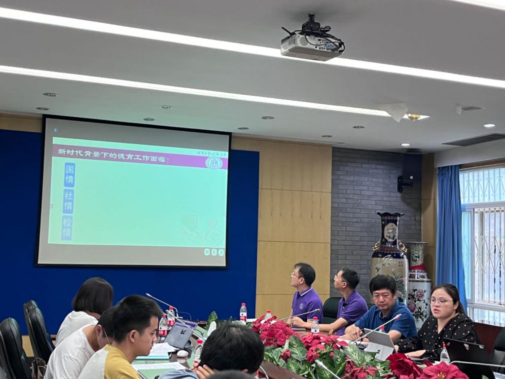 校长助理王田首先向参会的老师们阐明了组织开展入学教育的目的,既帮助了新教师了解附中精神,也指导老师们帮助即将入学的学生锤炼规则意识、培养良好行为习惯、尽快适应初中生活的重要性。他也鼓励各位班主任创建特色班集体,助力学生全面而有个性地成长。