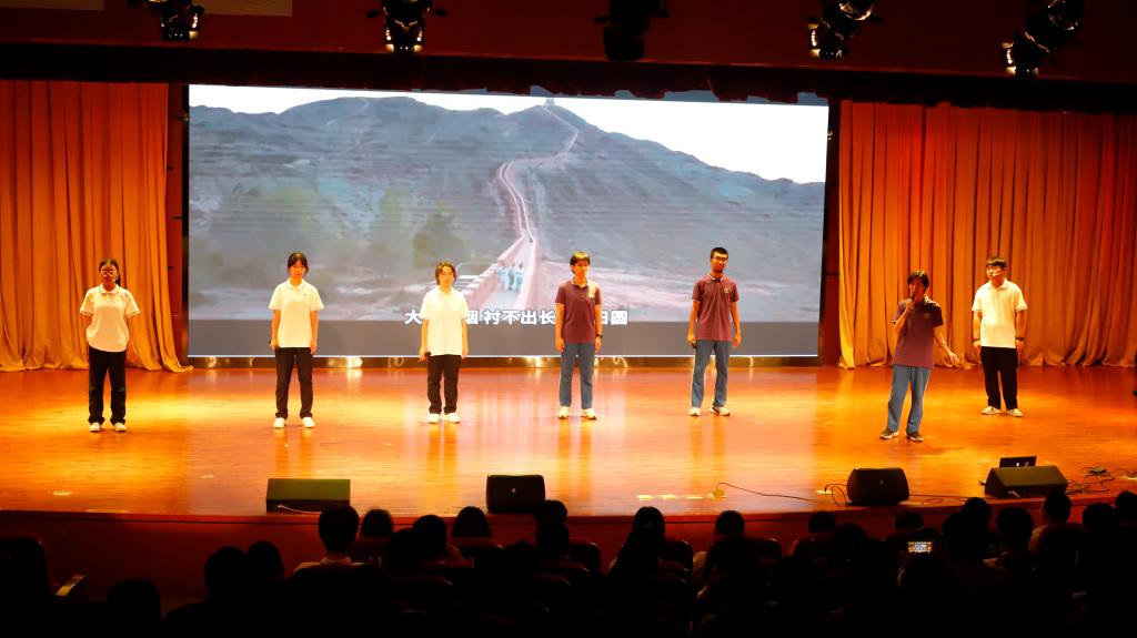 同学们排演的诗画剧《我愿以身许国》讲述了邓稼先、钱学森、任新民、王淦昌、钱三强和何泽慧为代表的一批优秀科学家,在祖国最需要的时候,毅然从国外回到祖国奉献自己,从无到有地创建我们的核工业。在嘉峪关市酒钢三中的首演,意义非凡,因为这里有中国核工业发展的摇篮——中核四0四公司。