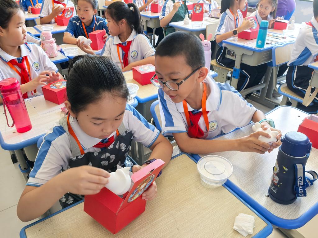 手工课上同学们打开兔爷教具