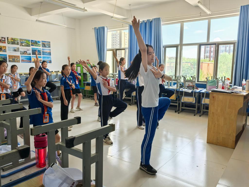 “小教师”曹子曦带四年级同学上舞蹈课