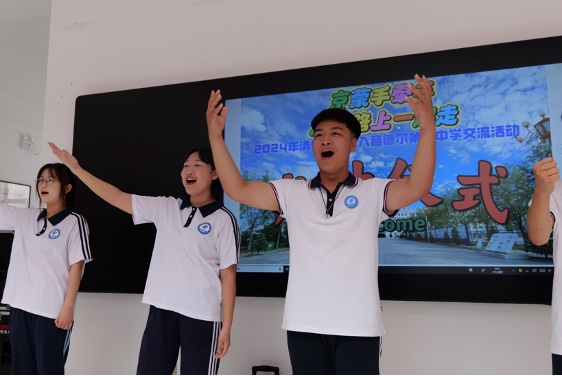 音德尔一中同学用歌声欢迎支教团到来