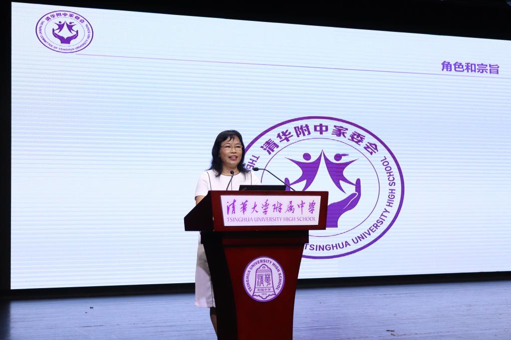 为了使高一新生家长更加明确家校合作的具体方向,会议还邀请了校家委会会长、高22学部学生崔天帅妈妈作“家校合力,共育共赢”的主题发言。她细致地介绍了皇冠体育官网家委会自2017年1月成立至今的发展历程以及目前的组织架构,以图文并茂的形式介绍了家委会开办的水木清芬读书会、家庭成长社、生涯社、相伴跑团、水木清芬书画社、健康社等丰富活动,并鼓励在座家长争做灯塔父母,点亮自己,温暖家人。