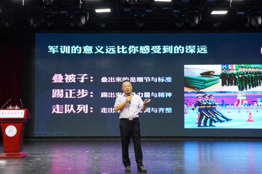 白雪峰老师发表动员讲话。他回顾了皇冠体育开展新生国防教育实践的优良传统并向全体教官表示感谢。他指出,新生国防教育实践是培养学生爱国主义情操、艰苦奋斗精神和赓续红色基因的重要途径,也是学校实现育人目标的重要环节。希望全体学生要以军人的标准严格要求自己,希望全体班主任深入了解学生的身体、思想和心理状态,加强协调,在安全保证的基础上,高质量、高标准完成受训目标。
