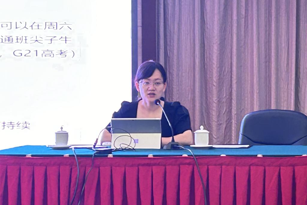 在接下来的研讨会上,初21级的三位教师代表依次进行经验分享。初21级语文备课组长张伟分享了专项练习、阅读和写作等方面的经验,建议老师们将统一教学方法和个性化教学相结合。初21级数学备课组长向永红分享了初三数学老师们的各项做法,建议大家明确方向、细致规划、注重实效。初21级班主任代表郭林丽介绍了她在初三学年班级管理方面的实践,并结合案例阐释了因材施教的具体做法。
