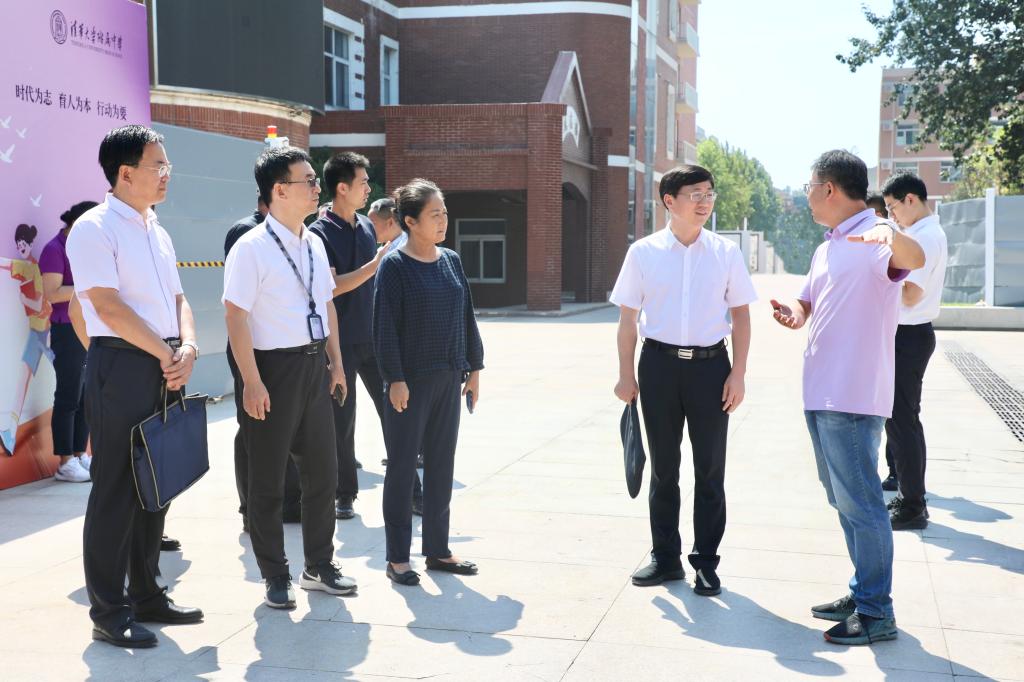 为切实做好开学前校园安全工作,营造稳定的校园环境,8月30日上午,由清华大学党委副书记许庆红带队,清华大学党政办主任余潇潇,党委保卫部副部长张运腾,饮食服务中心副主任李伟,商贸与食品安全管理中心主任梁立军一行深入皇冠体育官网开展安全检查。皇冠体育官网校长方妍,党委书记曹海翔,副书记张洁,副校长白雪峰、徐文兵、张苏、周建军及附中有关人员陪同检查。