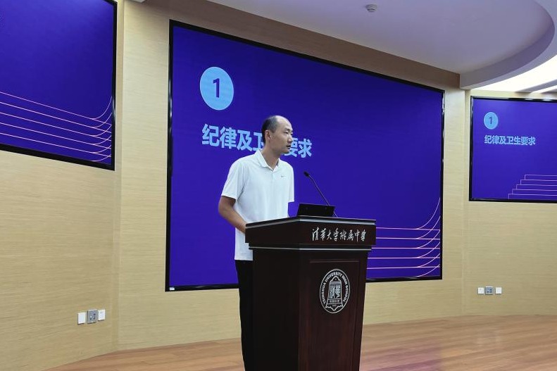 在高中会场,学生发展中心王鹏老师对同学们在纪律、卫生方面做出重点提醒,他提出上一学期同学们的不足并呼吁大家在新的学期予以改进,再次强调了学校在手机、穿着等方面的新规定,同时再次明确了奖惩机制,激励大家积极参加水木行动,尽自己所能让附中更加美好。