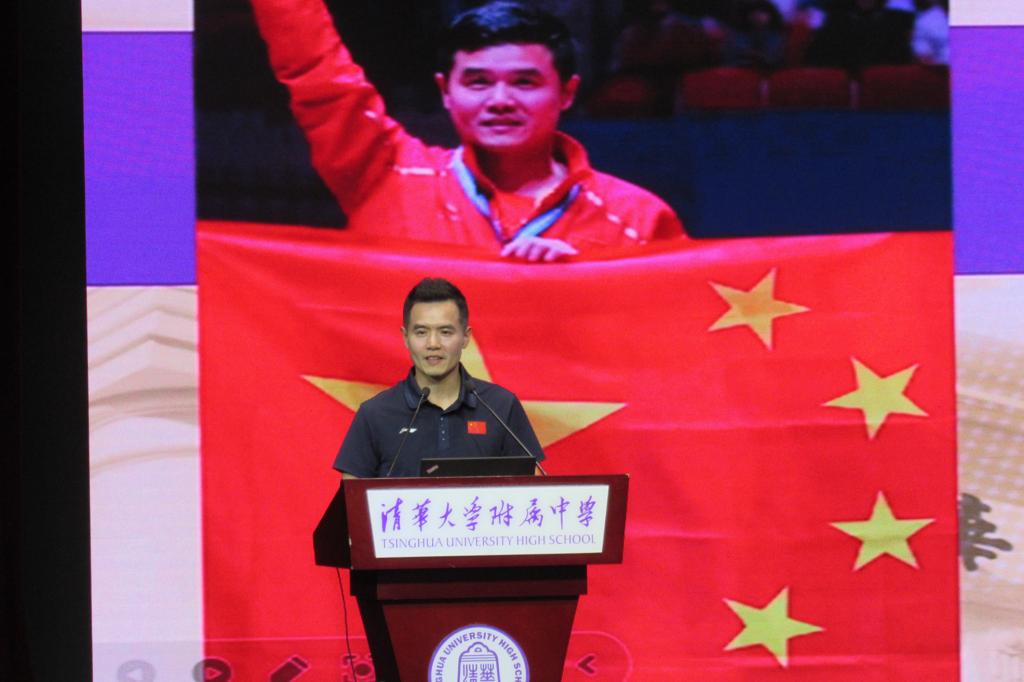 10月10日,初23学部邀请中国男子乒乓球原运动员和教练员、现任清华大学副教授刘国正老师,分享他和乒乓球“七个赛点”的故事。学生发展中心副主任李冰清老师、体育组付帅老师、初23学部主任张晓琼老师、副主任周小玲老师,以及全体班主任与同学们参与了本次活动。活动由初2304班冯潇伊同学主持。