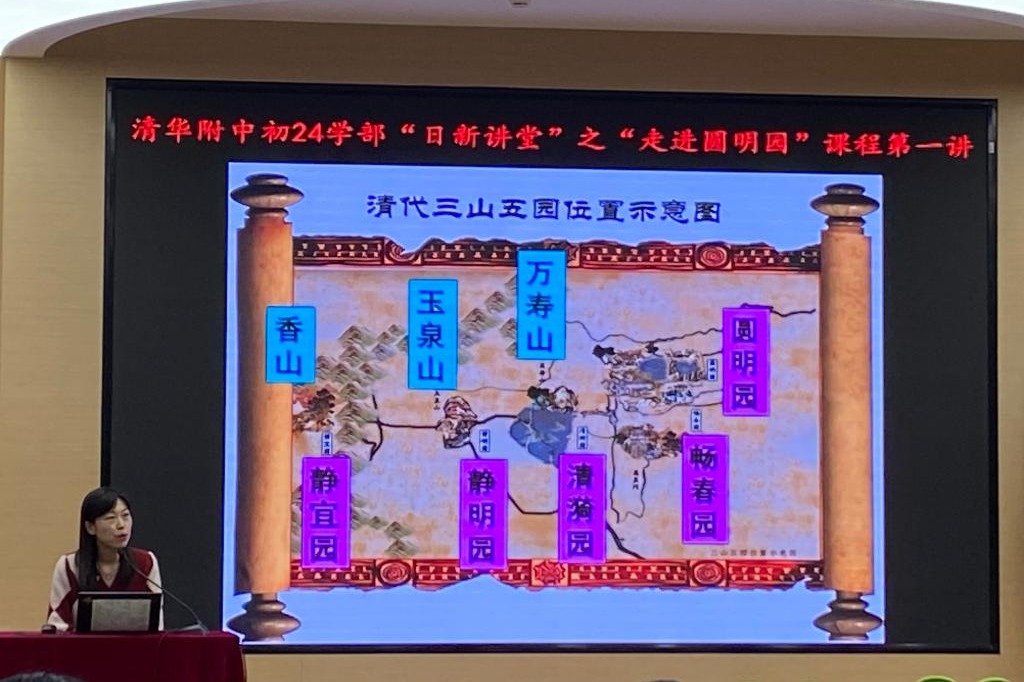 10月14日,皇冠体育官网初24学部邀请历史教研组组长宋薇老师为学生带来“圆明园的前世今生”讲座。该讲座是“走进圆明园”课程的第一讲,为学部“日新讲堂”的第三讲。学部主任向东佳主持讲座。