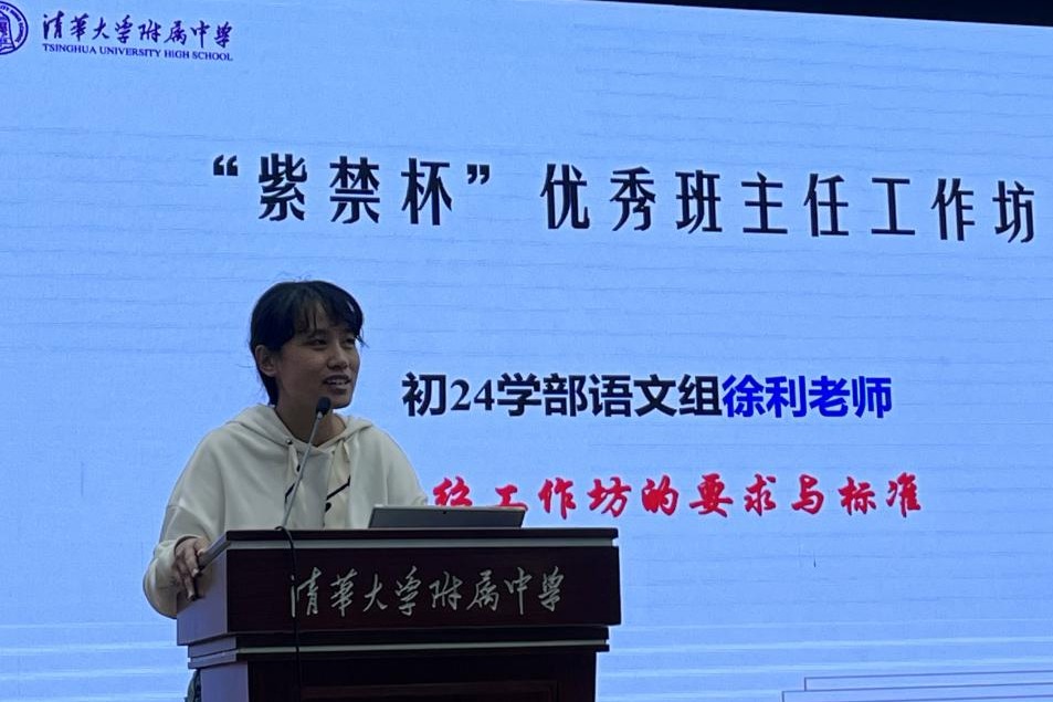 首先进行的是会议的第一部分——“紫禁杯”优秀班主任工作坊主题培训。作为开场,初24学部语文教师徐利介绍了工作坊的要求与标准。