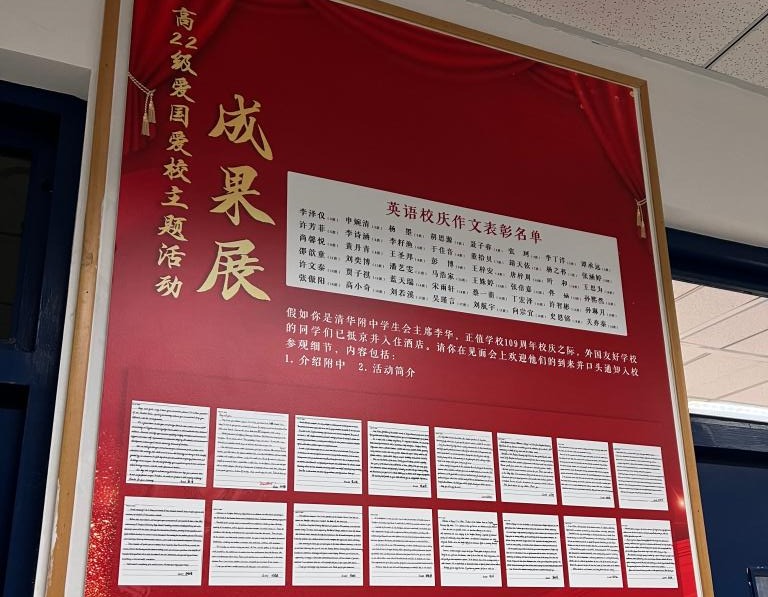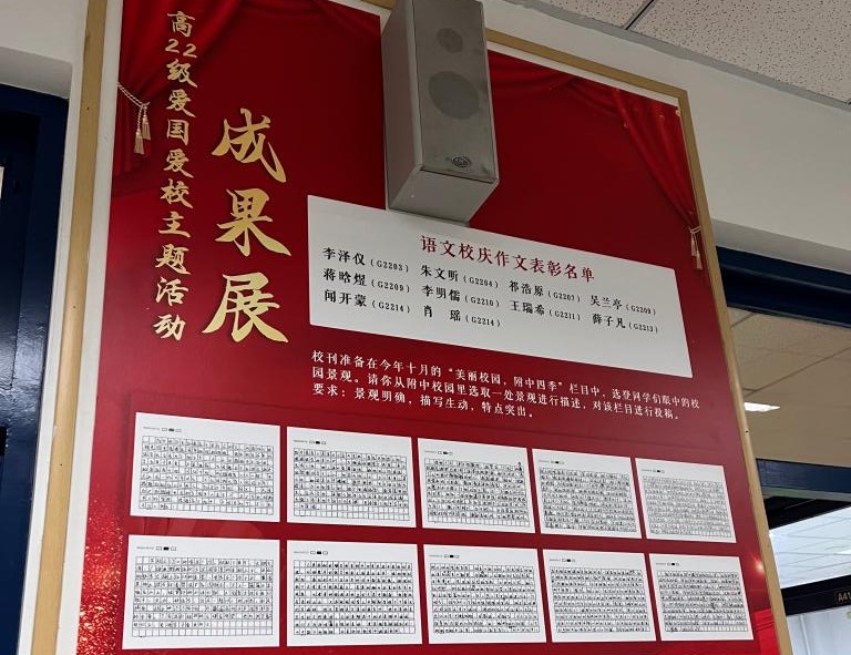 高22学部联合英语、语文备课组,推出爱国爱校主题活动,两个学科分别以小作文的形式引领学生书写对校园的观察与了解、提炼对附中文化精神的感悟、表达对母校的爱与认同。