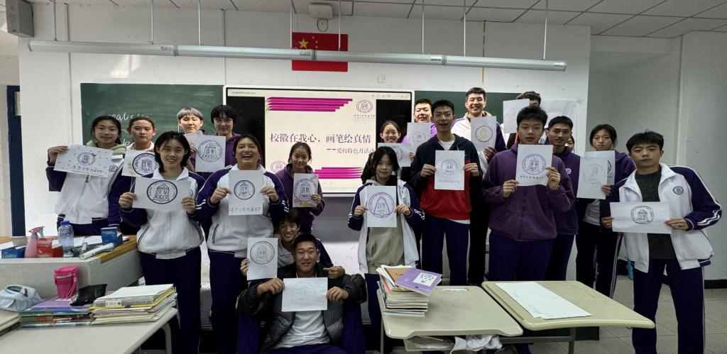 高24学部马班学生开展了“校徽在我心画笔绘真情”特色活动,同学们了解了校徽的意义、历史和设计理念。通过观察校徽、画校徽的方式表达对学校的情感。