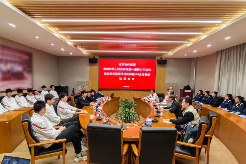 北京市篮协主席孙国华主持会议。在动员会上,孙国华表示,全力支持代表队备战工作,并对队伍寄予厚望。他着重指出,运动员需恪守竞赛规程与体育精神,秉持首都风貌,作为城市形象的代表,他们肩负重任,期望队伍能在赛场上展现卓越竞技状态,力争佳绩,为北京市争光。
