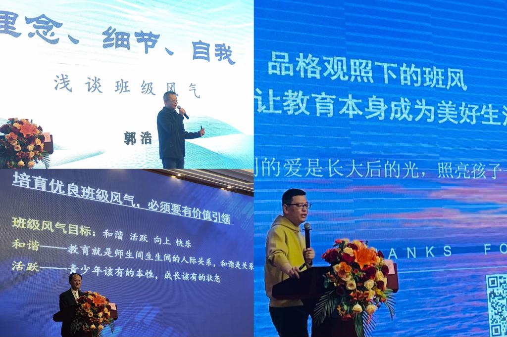 来自中国科学院兰州分院中学的郭浩老师在《从细微处提升班级风气》的讲座中,强调了班级管理应从细节入手,关注学生的个体差异,以此构建积极向上的班级风气。郭老师还强调了情绪管理的重要性,建议班主任应与学生共情,传递真情之风,同时提升个人的思考力和成长力。通过细致入微的方法,营造一个有爱、有真情、互助成长的班级氛围。来自重庆教师发展中心的张万国老师分享了题为《价值引领下的班级建设》的带班经验,强调高中入学初期通过入格教育塑造班级文化的重要性。他提倡在开学前明确班级核心价值观,设定好班级风气、管理价值和德育目标,并通过班训、班徽、班级口号等文化元素来凝聚学生。