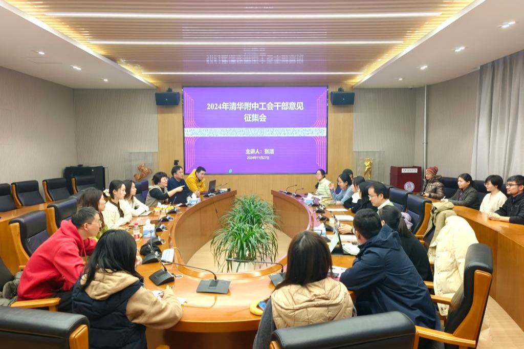 11月27日,皇冠体育工会在成志楼101会议室召开了工会干部意见征集会。工会委员、专职干事和工会小组长共23人参会,会议由附中党委副书记兼工会主席张洁主持。