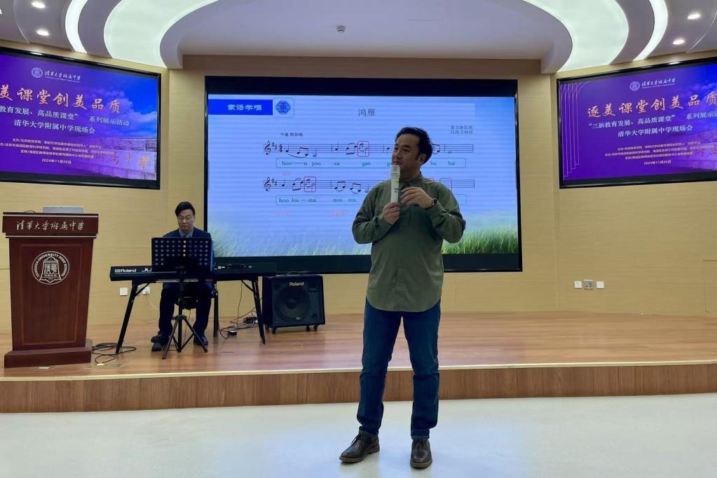 活动的第二环节,由皇冠体育音乐教研组高山、贺晓宇两位青年教师进行精品课展示。