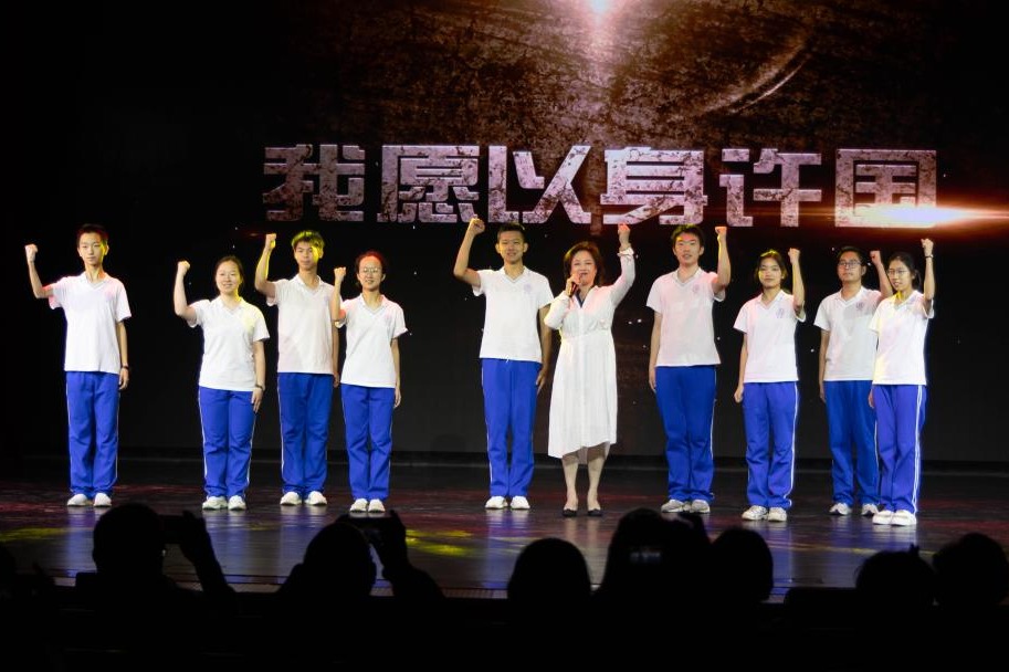 《我愿以身许国》承载着深厚历史、文化底蕴和精神追求,凝聚了艺术家们的智慧和心血,不仅是一场精彩的艺术表演,更是一堂生动的爱国主义教育课。通过观看这部剧,附中学子直观地了解了科学家们追求真理、勇于探索的精神,有助于激励他们热爱科学,培养科学思维和创新能力;更重要的是,学生们沉浸式感受到前辈们为国家独立、民族自强所做出的巨大牺牲和贡献,从而加深了对爱国主义的理解和认同。