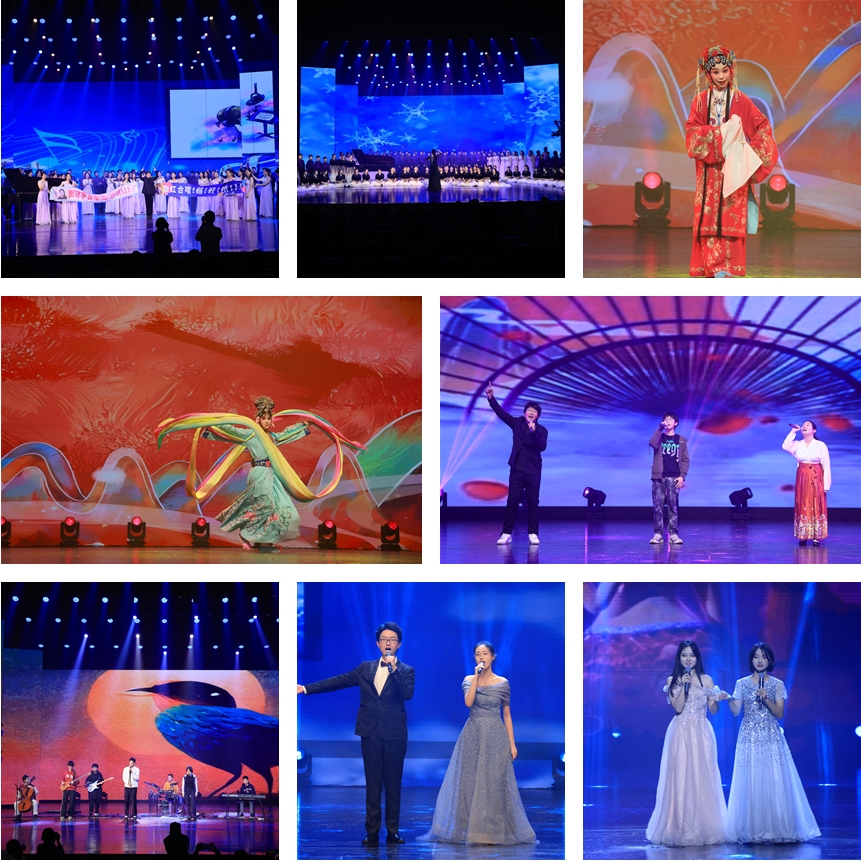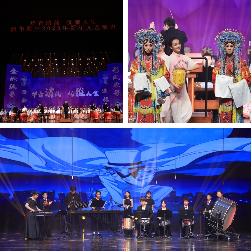 本次演出以民乐、管弦乐、歌舞、合唱、京剧等丰富多彩的形式开展。每一个节目都经过精心编排,充分展现了师生们的艺术才华和青春活力。在《龙腾虎跃》《梨花颂》的激昂旋律中,金帆民乐团用精湛的技艺为晚会拉开序幕,同学们生动演绎,努力让中华文化绽放时代光彩。《柯南与摇滚》的打击乐以律动的节奏,让观众尽享打击乐的独特魅力与奔放活力。