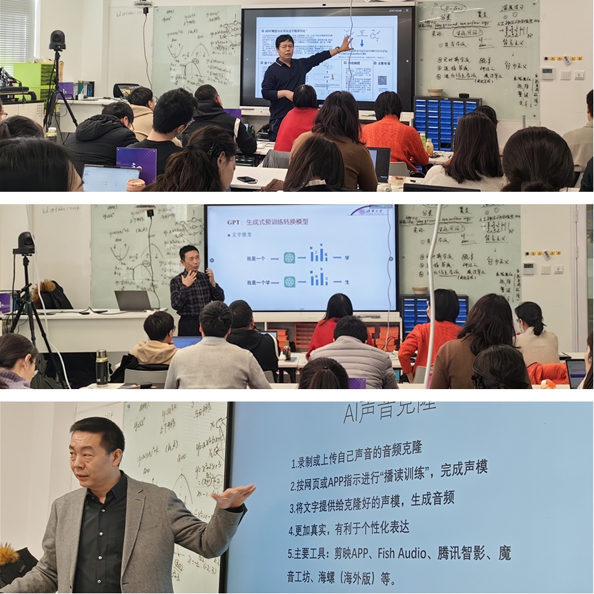 中国传媒大学郭艳民教授则从专业视角出发,带来人工智能与媒介创作实践讲座,围绕AI音频与AI视频两大板块,结合多个实战案例,深入讲解了AI在媒介创作领域的创新应用,拓宽了老师们对于人工智能多元化应用场景的认知视野。