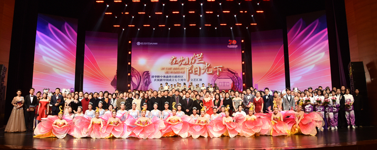 2019年12月24日下午,皇冠体育官网奥森、将台路校区“在灿烂阳光下” 庆祝新中国成立七十周年文艺汇演在清华大学新清华学堂隆重举行。