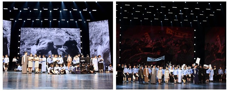 红旗招展、硝烟弥漫,烽火连天的革命年代重现眼前。精彩绝伦的情景表演、气势磅礴的合唱、震撼人心的舞蹈,讲述了中国共产党人在坚苦卓绝的战争岁月里,凭着坚定的信仰和忠诚,带领中国人民赢得全国解放的非凡历程。