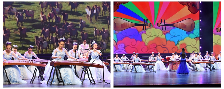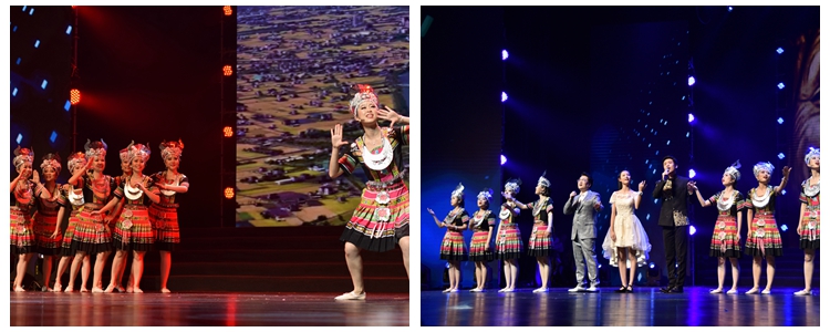 一段悦耳的民乐合奏掀开了汇演的第三篇章。一首首深情豪迈的歌曲、一圈圈轻盈动人的旋转,表达了对祖国的深情眷恋、对国家统一的热切期盼,展现出了中华儿女血脉相连、众志成城的磅礴力量,谱写了中国共产党在改革开放的浪潮中实现中华民族华丽转身的壮丽篇章。