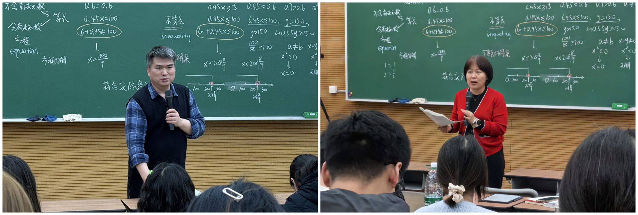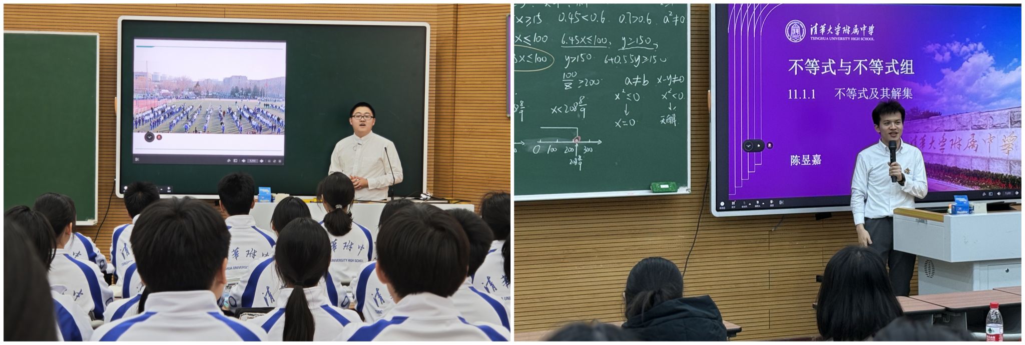 陈昱嘉老师则带来了七年级下册第十一章第一节《不等式及其解集》。他以学生节制作卡片的实际场景为背景,生动引出不等式及其解集的概念,并通过与等式的对比,帮助学生深化对不等式的理解,使抽象的数学知识更具现实意义。