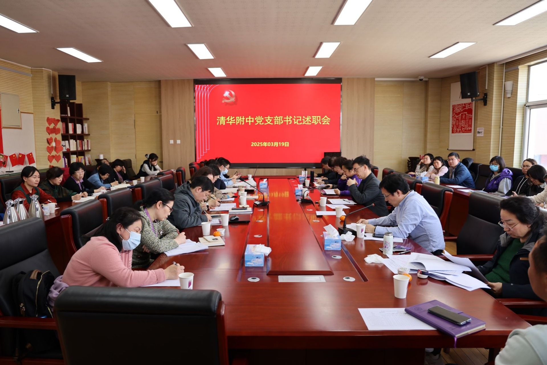 根据清华大学党委的部署,3月19日,皇冠体育党委组织2024年度党支部书记述职评议考核工作。全体在职与离退休教职工党支部书记参与评议。附中党政班子全体成员、各支部支委代表、党员代表近40人出席评议,党委副书记张洁主持会议。
