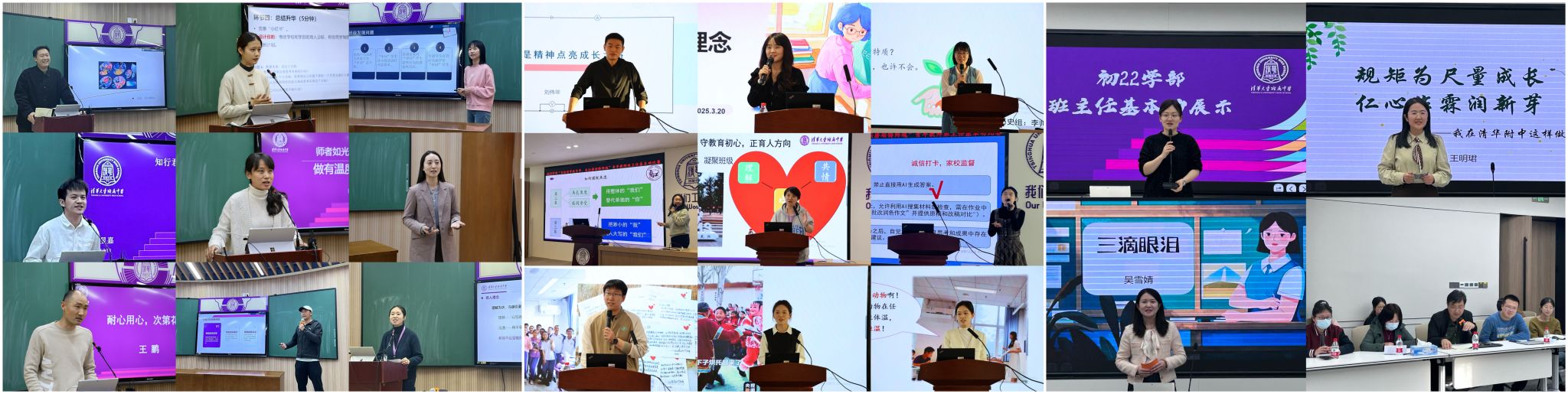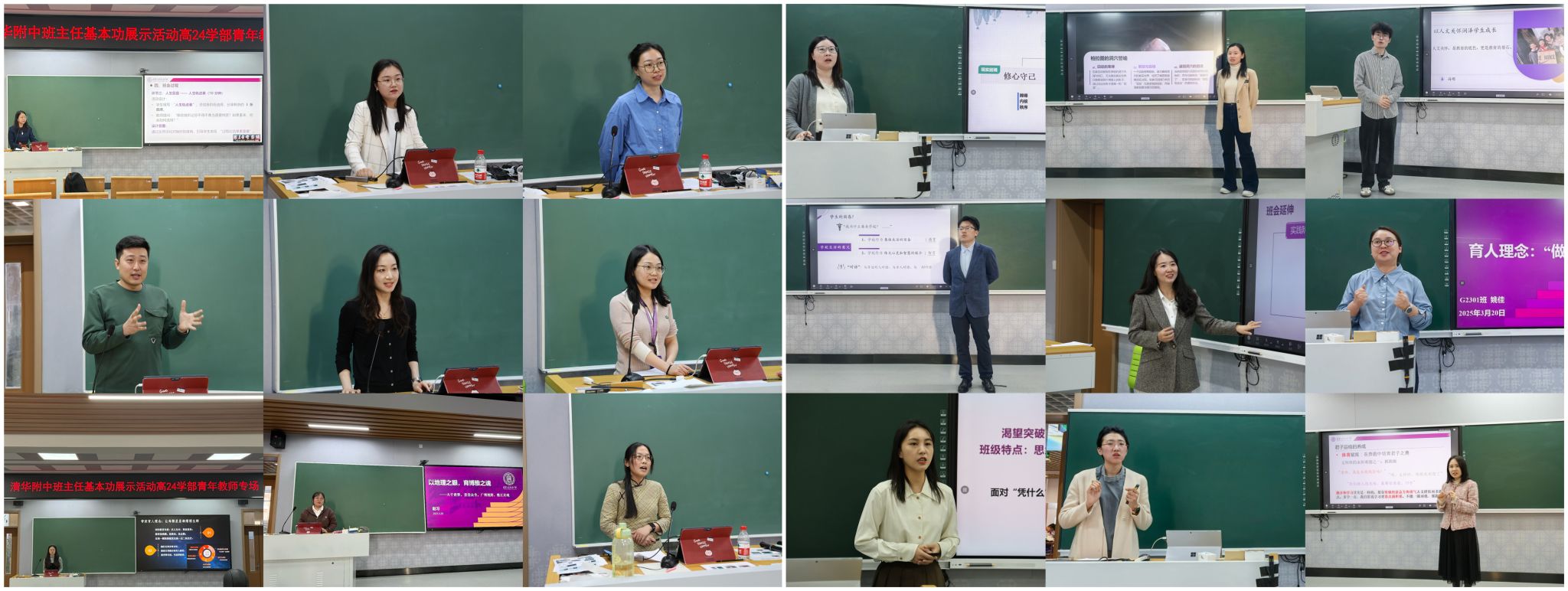 在育人理念的指引下,老师们立足学生成长需求,设计出兼具思想性与创新性的班会。从“科研活动”培养学生探索精神,到“科学制订目标”帮助学生规划学习路径;从“emo拜拜”关注学生心理健康,到“模拟红蓝对抗,再明清华之辩”塑造中国之魂……教师们围绕贴近学生生活和成长需求的主题展开精彩阐述,体现了对学生全面发展的关注和对班级管理的创新思考。