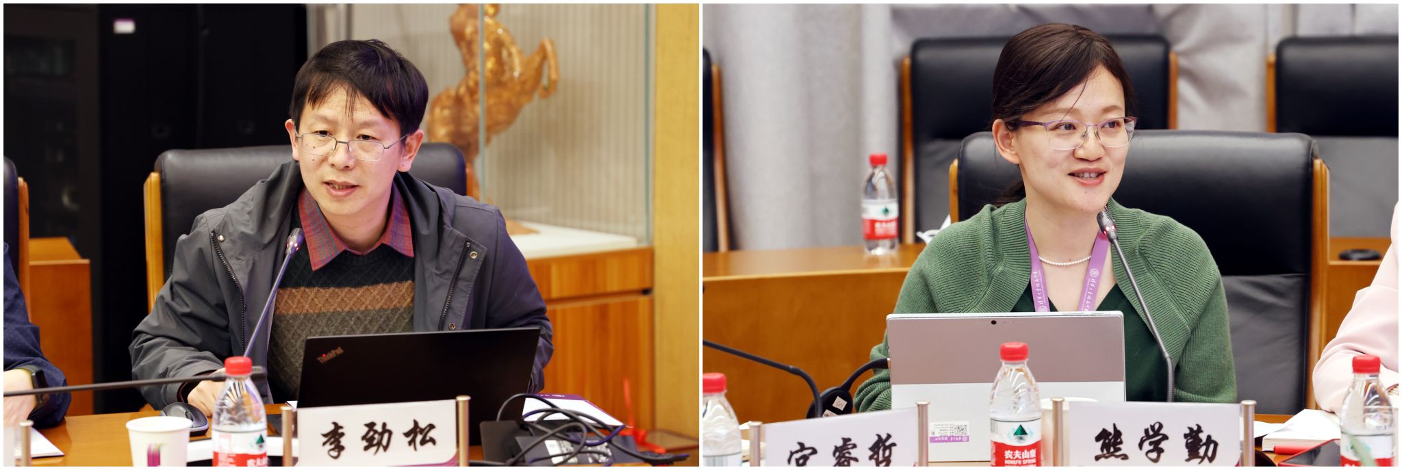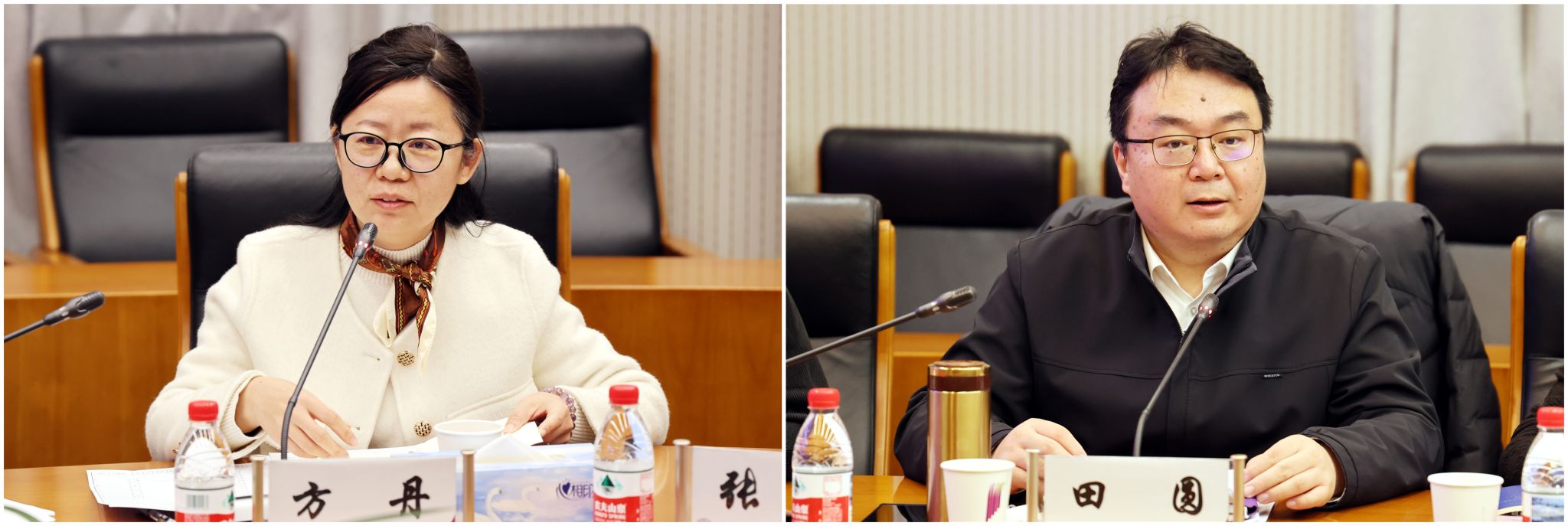 教育科学研究院评价中心科研员方丹(左)、教委基础教育二科科长田圆(右)指导发言