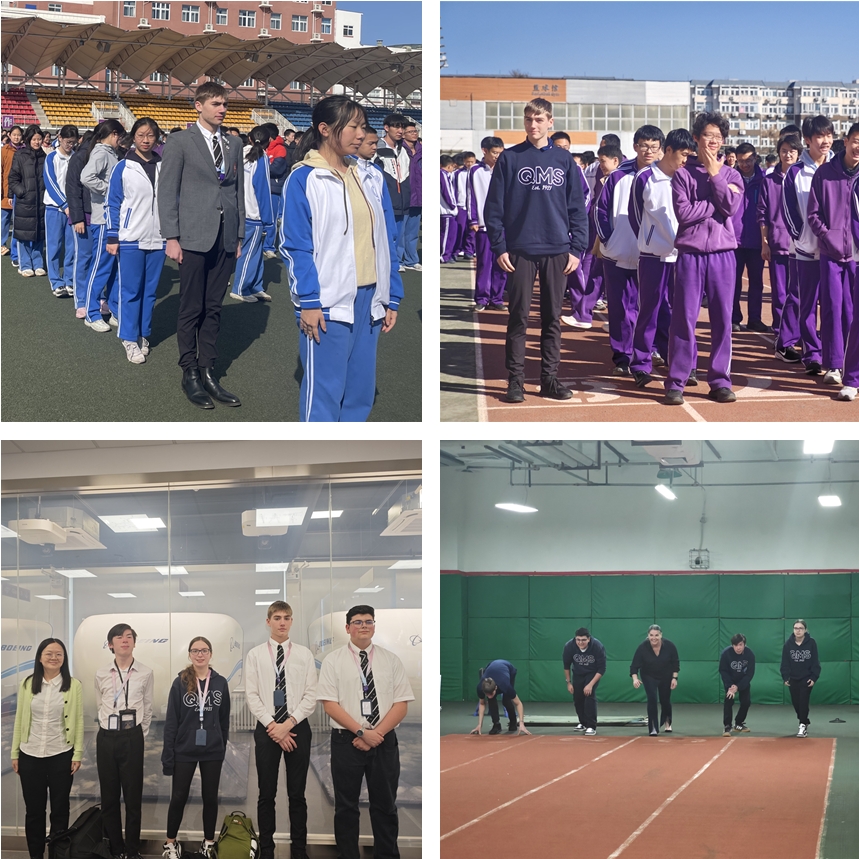 参加皇冠体育升旗仪式、皇冠体育校园长跑,参观波音牛顿飞行学院,体验附中体育馆跑道