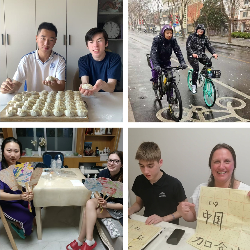 在短短一周的相处时光里,我的伙伴学会了用中文书写 “加拿大”,还饶有兴致地参与了中国漆扇制作、扎染工艺体验、刺绣初尝试、剪纸创作以及扑克牌游戏。看着她开心的模样,我深信,这份快乐已然在她心底种下了热爱中国的种子。于我而言,有这样一位同龄伙伴相伴,一同用餐、谈天说地,携手完成诸多趣事,幸福感如潮水般在心中涌动。在此,我真心感激加拿大师生们的信任与勇气,正是这份信任,让他们跨越遥远距离,选择来到我们的学校、走进我们的家庭。分别的时刻悄然来临,此时我们早已成为亲密无间的朋友,心中满是眷恋与不舍。这一场交流让我明白,只要我们心怀包容与热忱,无论性格、语言还是文化存在多大差异,都无法阻挡我们彼此沟通、相互了解的渴望。或许,这正是校际交流活动最具价值、最令人动容的意义所在。