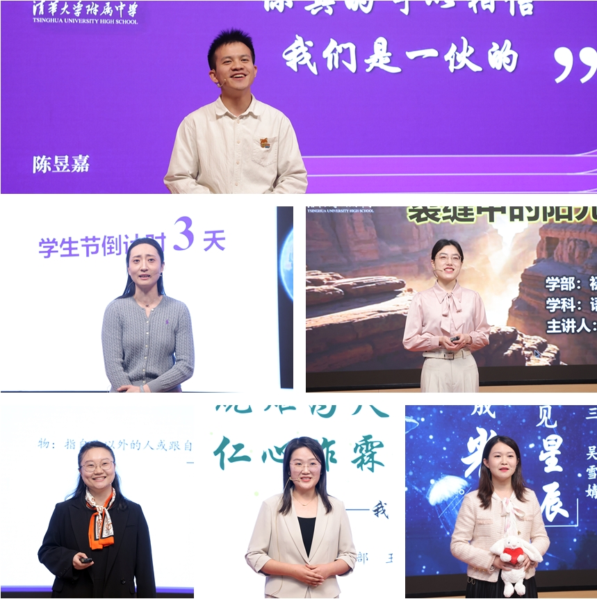 初一青年教师陈昱嘉、初一班主任周维纬、初二青年教师靳姝菲、初二班主任张梦甜、初三班主任王明珺、初三班主任吴雪婧