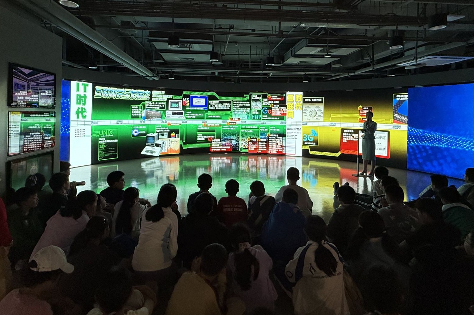 同学们参观奇安信网络安全威胁与网络安全发展史展厅