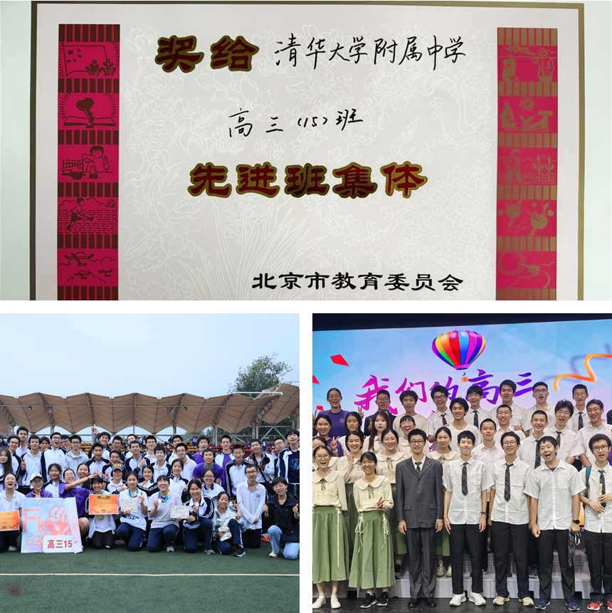 高三15班荣获北京市先进班集体荣誉证书、班级活动合影